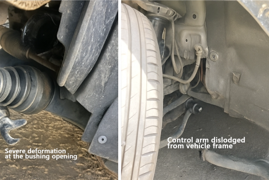 بوش بازوی کنترل به دلیل پیکربندی طراحی باز، ممکن است تحت تاثیر بارهای خاص دچار تغییر شکل یا حتی جابجایی شود. چنین خرابی به طور بالقوه می تواند آسیب تصادف را بدتر کند و یک خطر ایمنی ایجاد کند.
